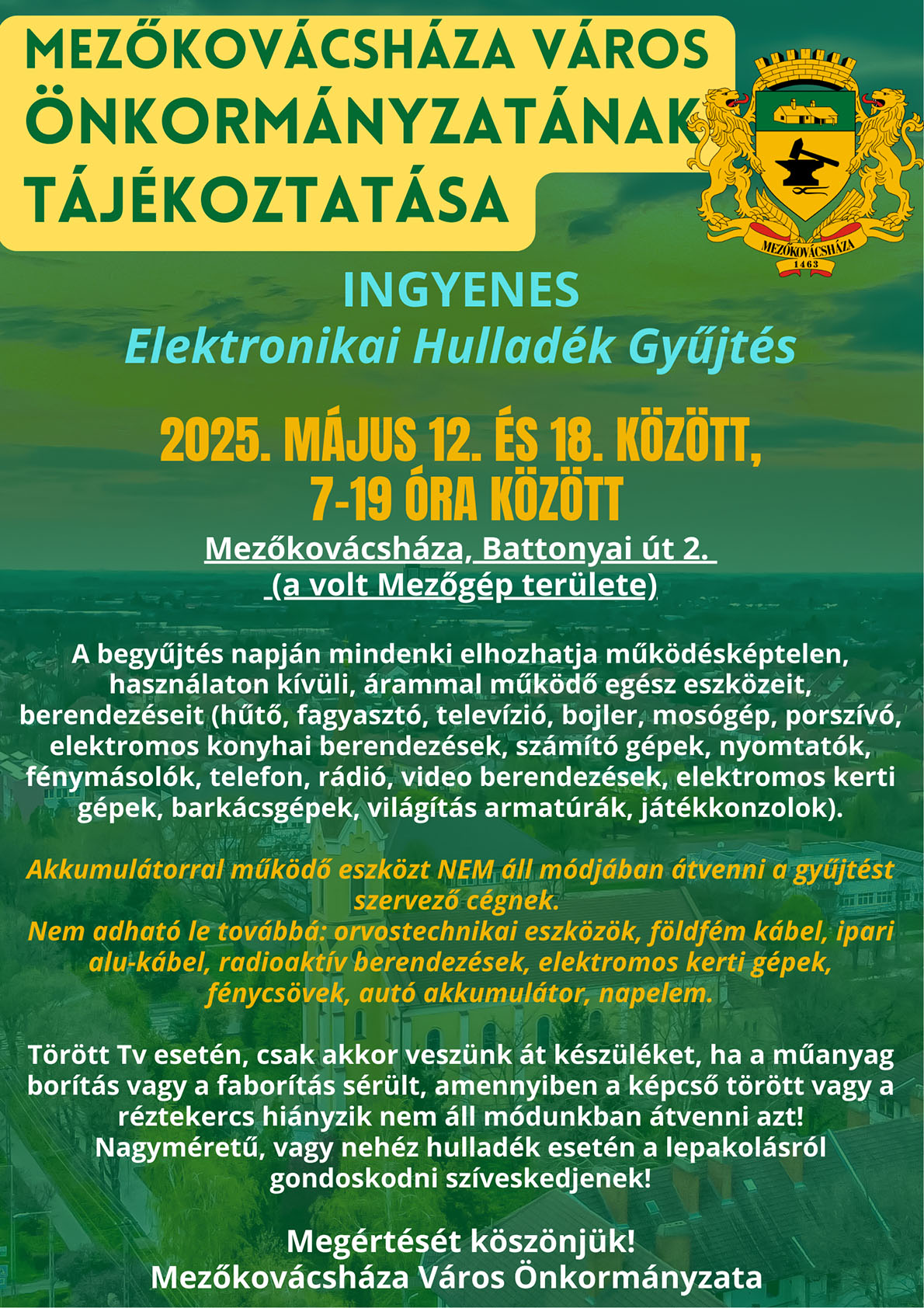 Helyszín: 5800 Mezőkovácsháza Árpád u. 176. Mezőkovácsháza Város Önkormányzat Polgármesteri Hivatal nagyterme